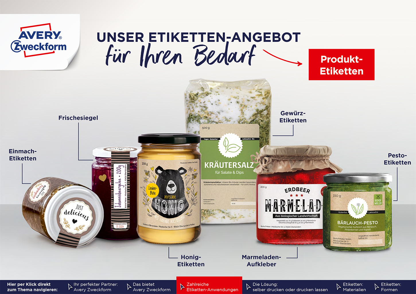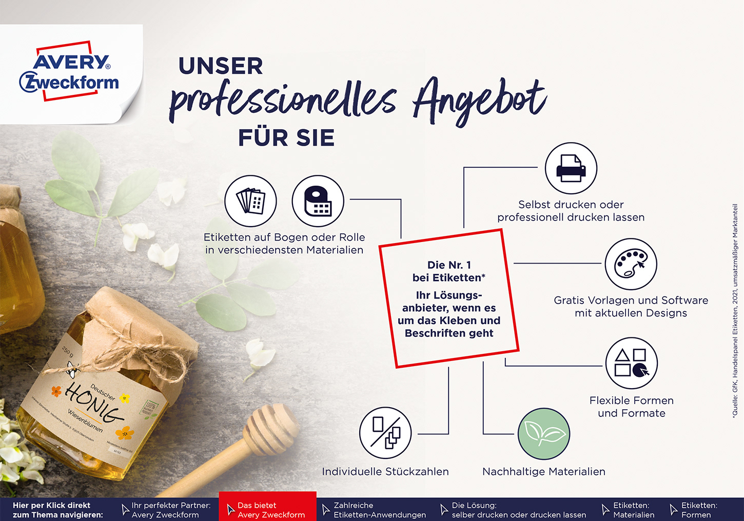 PDF-Flyer mit interaktiven Funktionen, Thema Etiketten, zur Beschriftung von