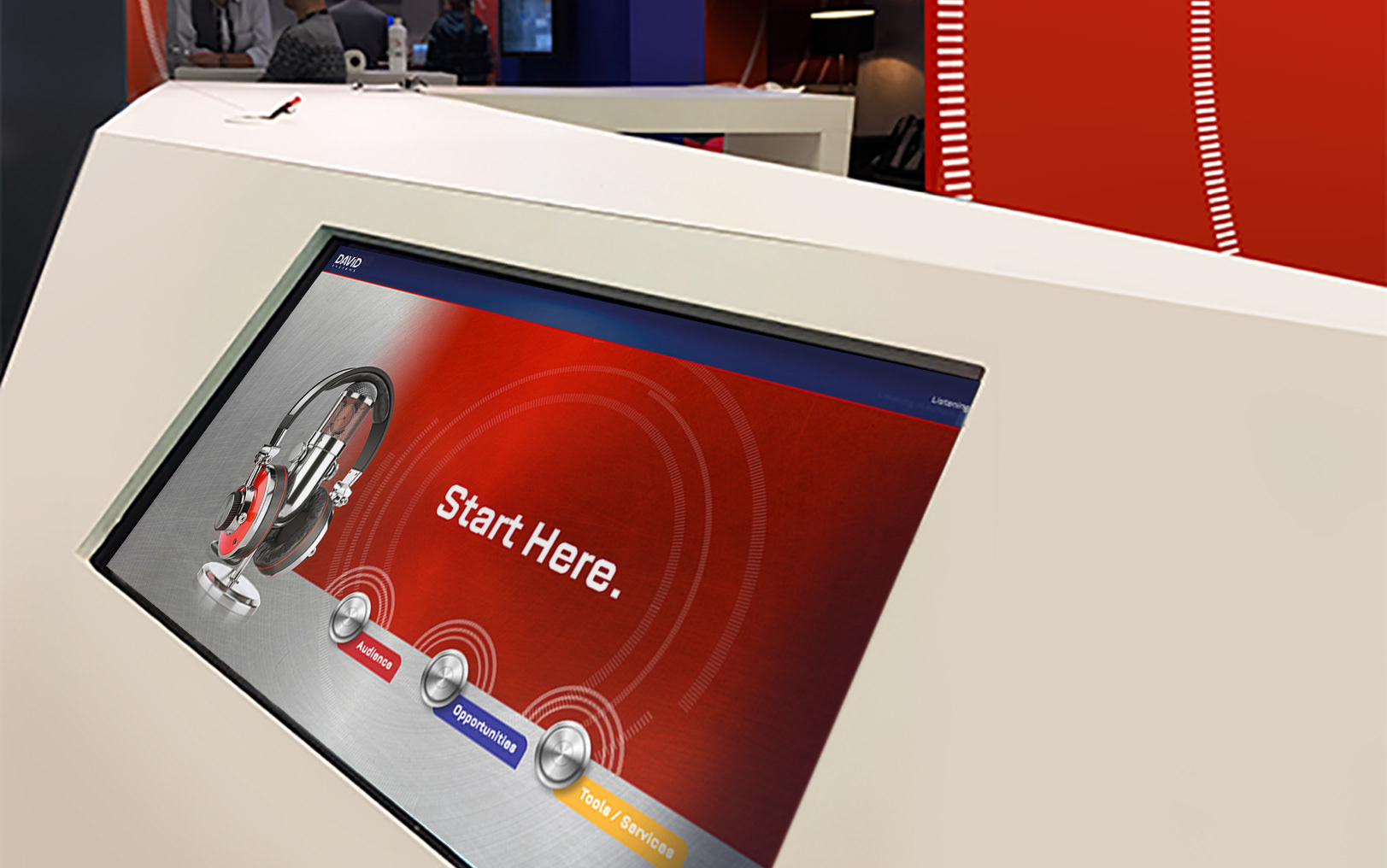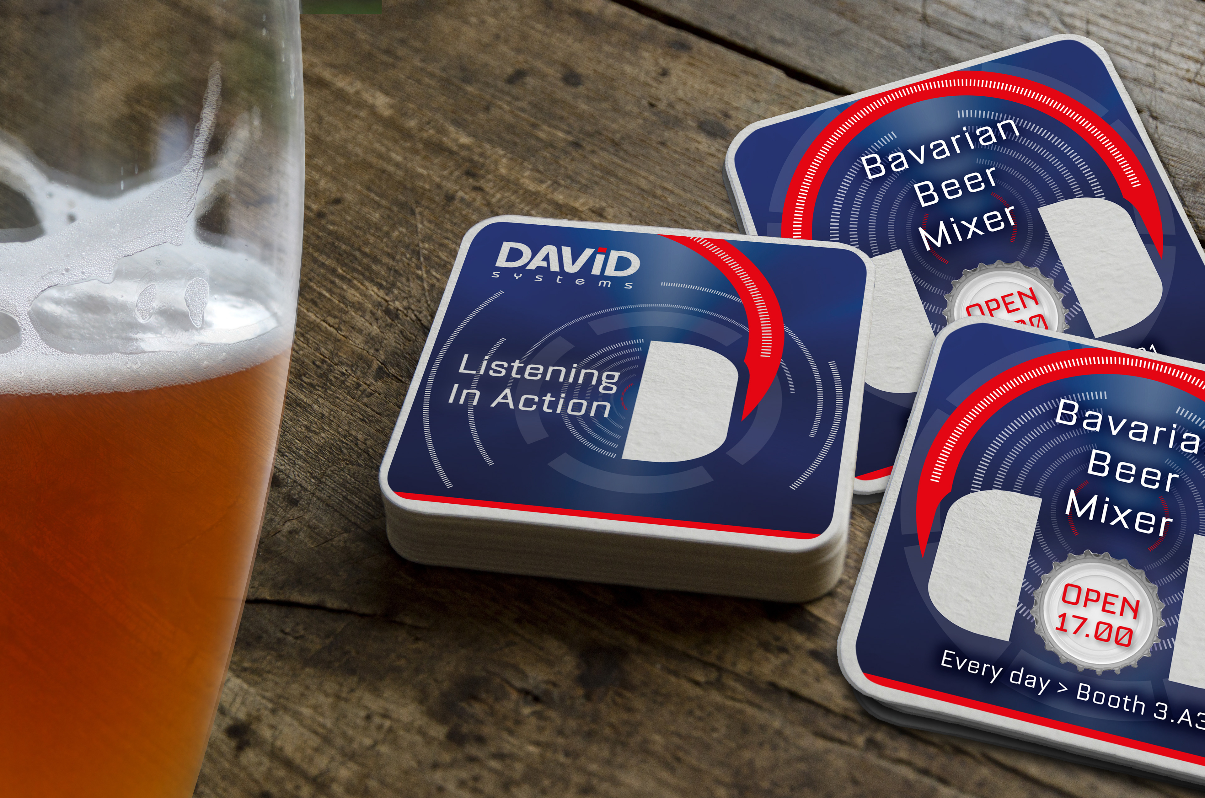 Ursprünglich sollte lediglich ein Bierdeckelmotiv gestaltet werden, das zu DAVID Systems passt und das Audiothema als verbindendes Element transportiert. Das dafür entwickelte Earphone-Design im Flat-Icon-Stil kam jedoch so gut an, dass es sich im Laufe der Zeit zum zentralen Eyecatcher der Marke entwickelte – und über Jahre hinweg auf Messen, in Social Media und in Anzeigen zum Einsatz kam.