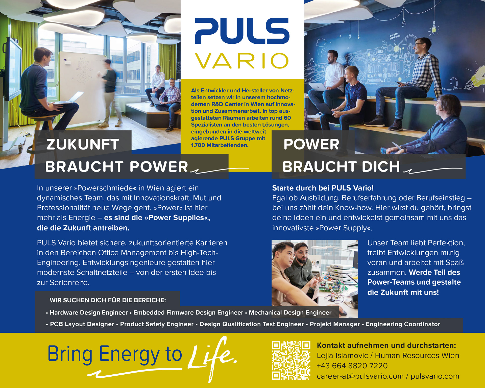 Was macht ein technologisch führendes Unternehmen wirklich aus? Bei PULS ist die Antwort klar: Es sind die Menschen hinter den Innovationen – Entwickler:innen, Ingenieur:innen und kreative Köpfe, die mit Leidenschaft an der Zukunft der PULS Netzteile arbeiten. Sie sind das Herz von PULS.
