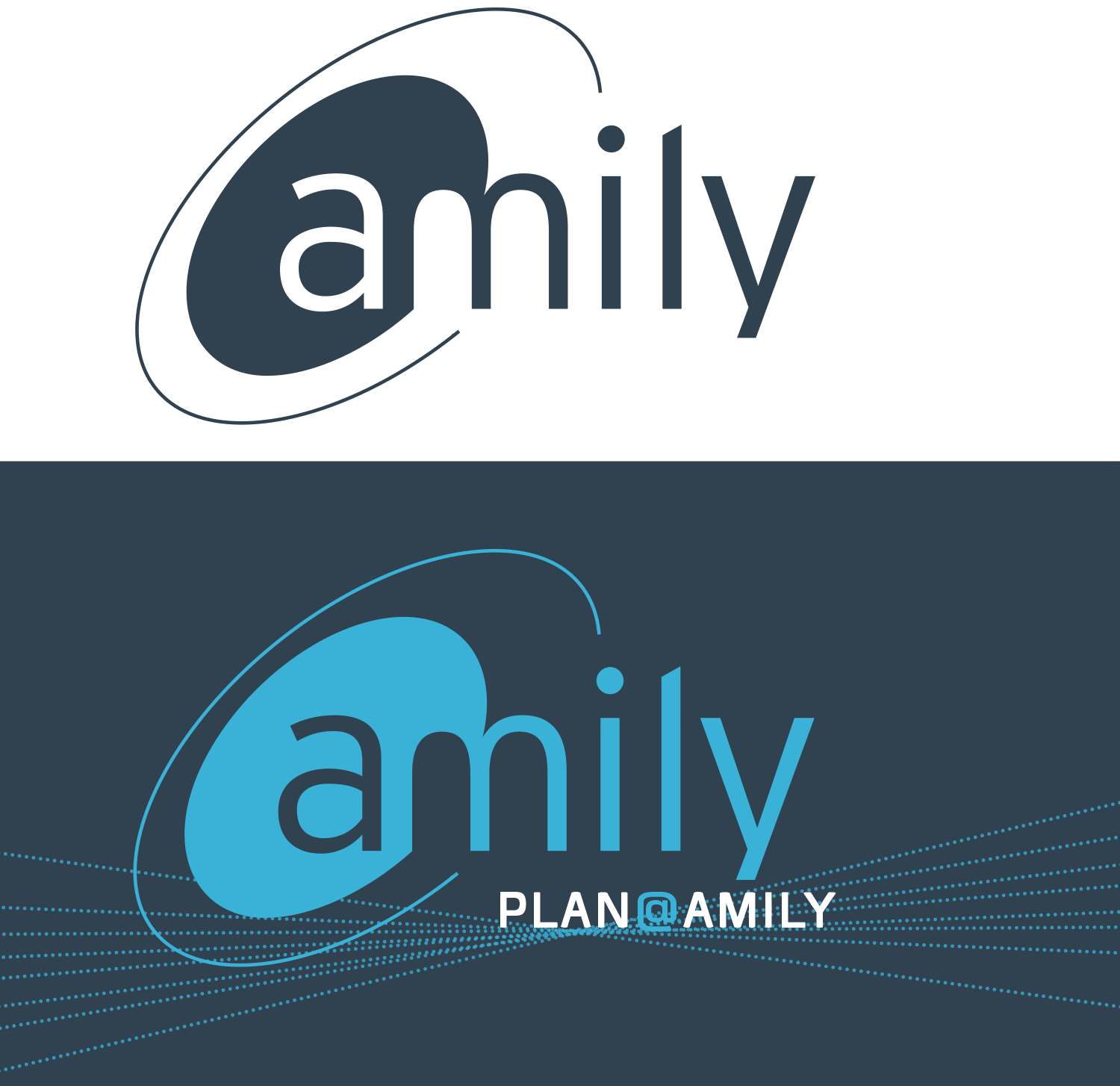 Logo amily: Logomodifizierung und Ergänzung mit dem Claim »Plan@amily«, das für die Werbeplanung mit amily steht