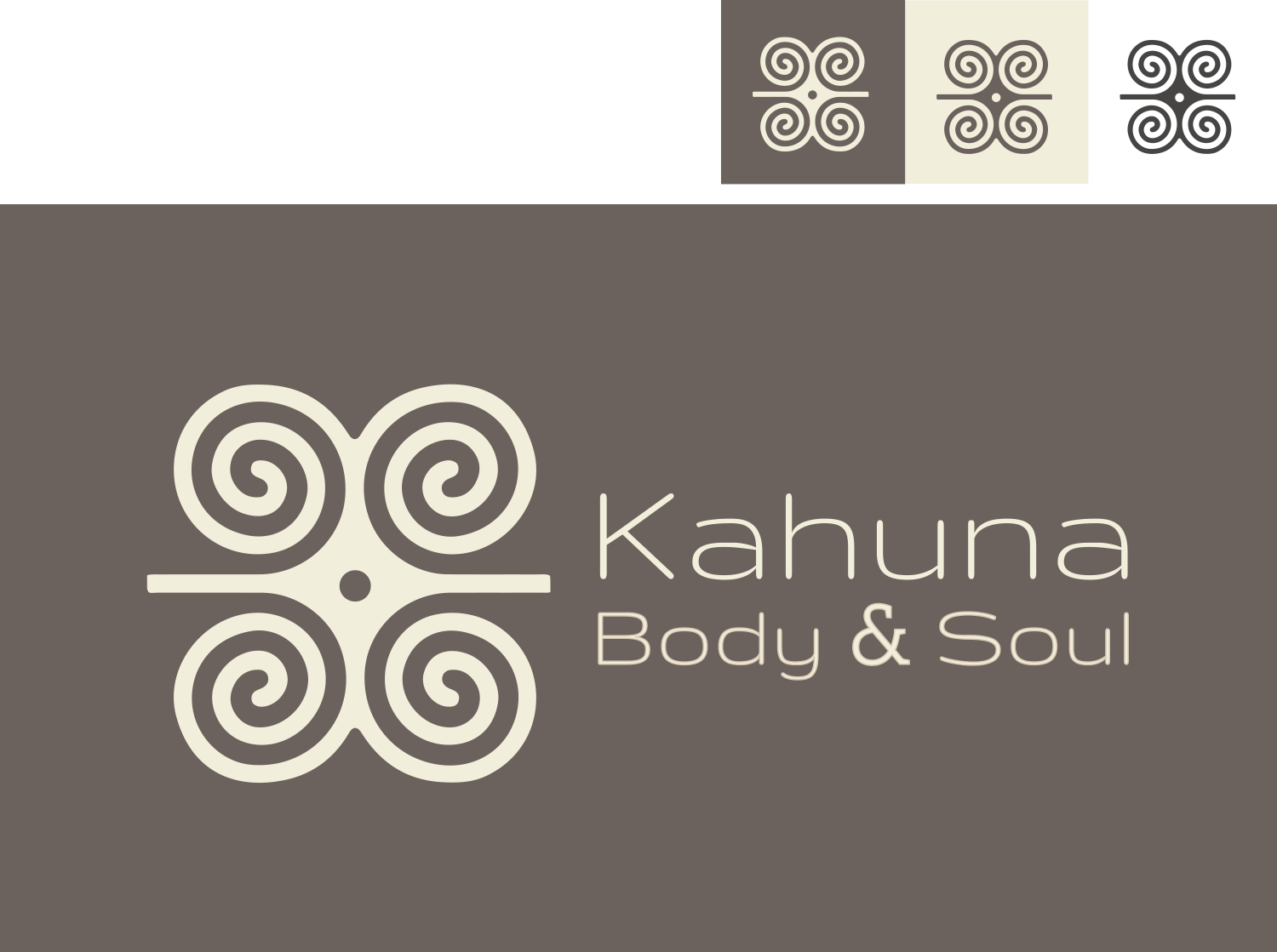 Logo Kahuna Body & Soul: Das Logo-Symbol »Dwennimmen« steht für Stärke und Verstand und symbolisiert in seiner Klarheit die Wirkungsweise der Kahuna Massage. Farbsprache: warme Braun- und Vanilletöne.