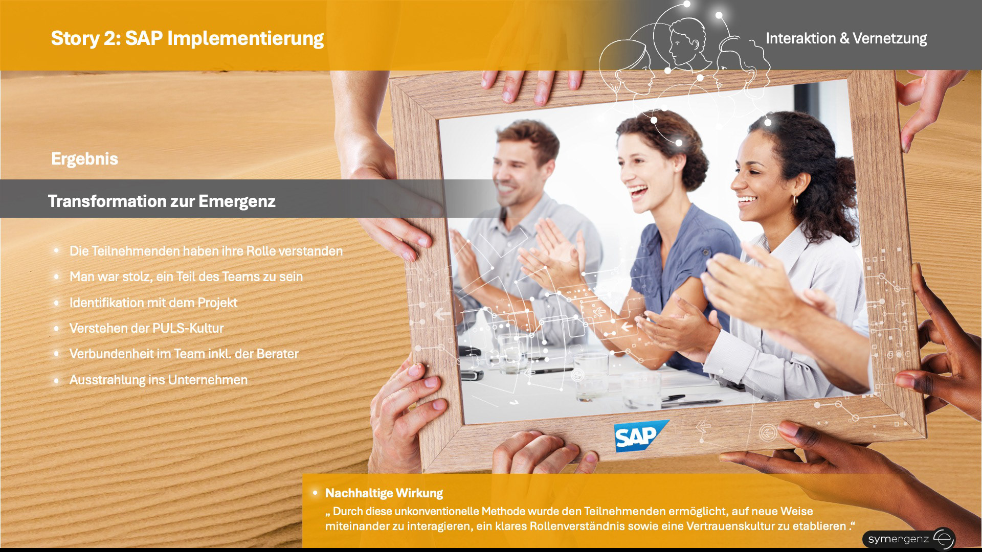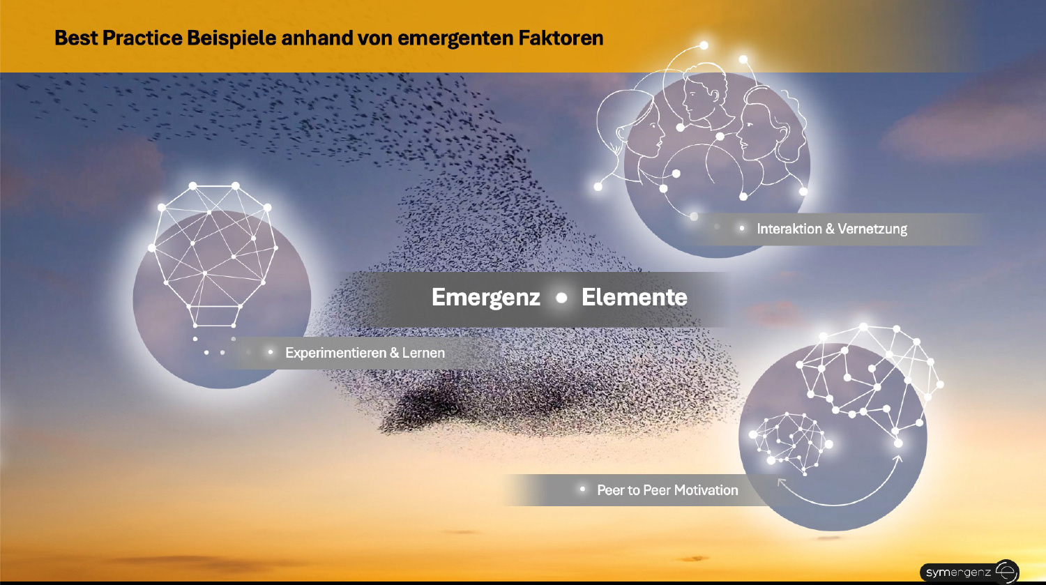Die entstandene Präsentation zeigt konkret und lebendig, wie aus Verbindung und Interaktion Neues entsteht – und wie Emergenz in der Praxis in Unternehmen und HR wirkt.