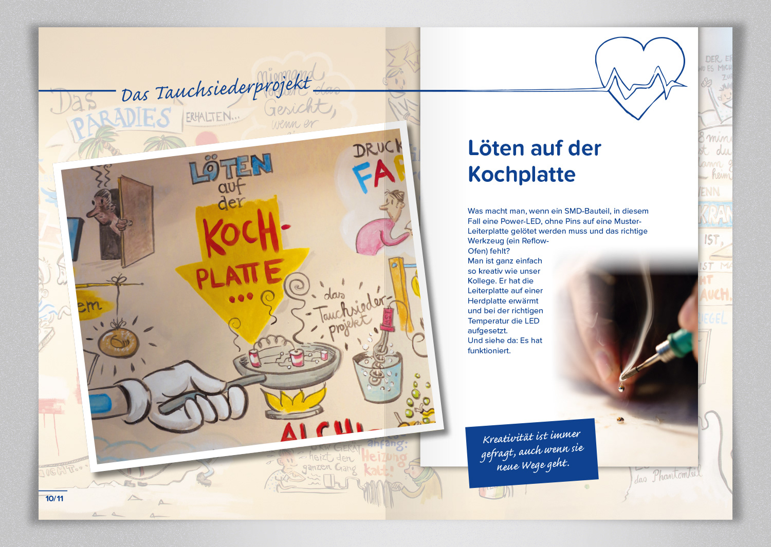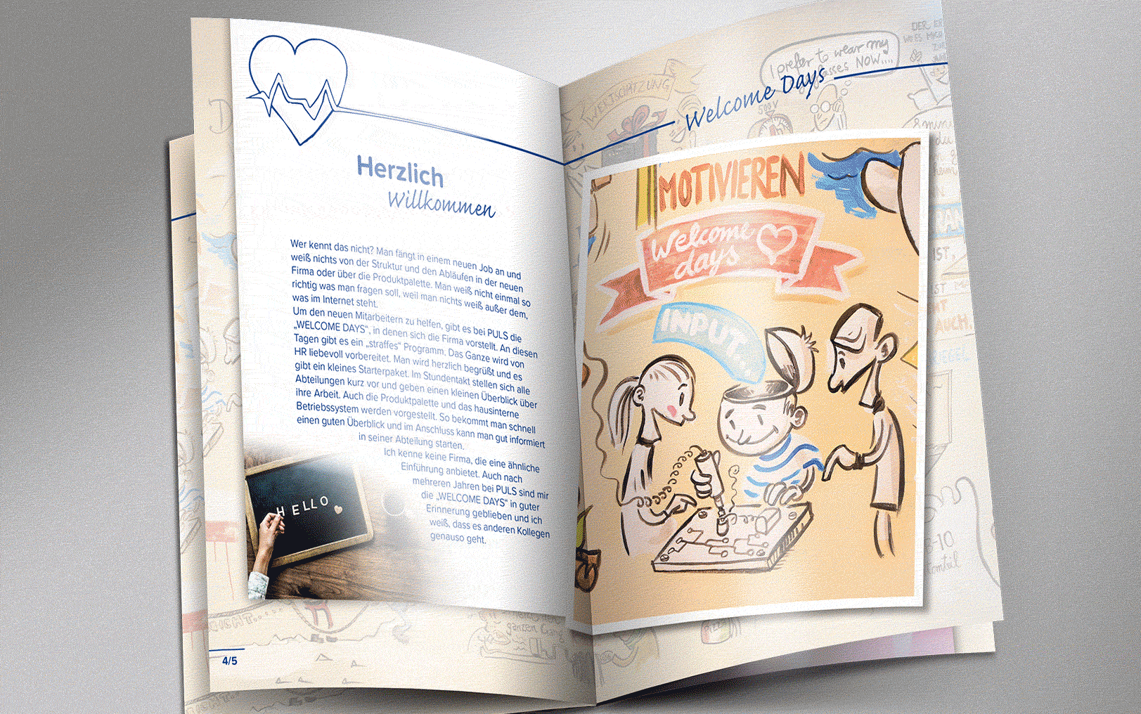 Auf Basis der vor Ort entstandenen Wandillustration von Matthias Süß und realer Fotografien entwickelten wir das PULS-Geschichtenbuch – ein einzigartiges Konzept, das Illustration und Realität miteinander verbindet. Der umlaufende Umschlag mit dem kompletten Wandmotiv und die hochwertige Banderole verleihen dem Buch eine besondere Wertigkeit.