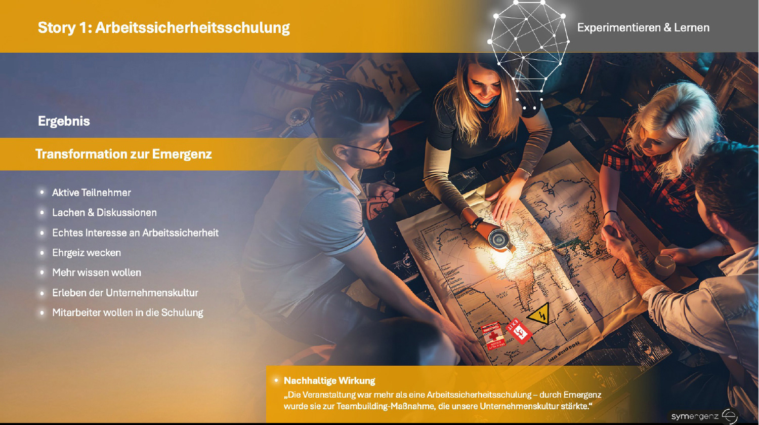 Die entstandene Präsentation zeigt konkret und lebendig, wie aus Verbindung und Interaktion Neues entsteht – und wie Emergenz in der Praxis in Unternehmen und HR wirkt.