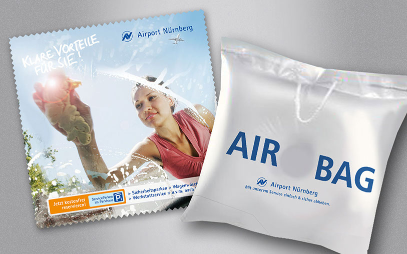 Giveaways: Reinigungstuch / „Airbag˝- Tasche