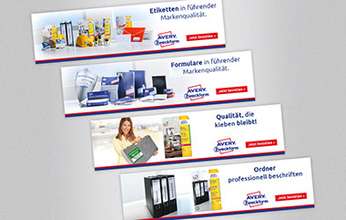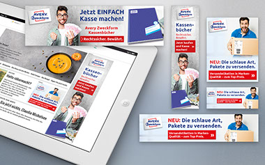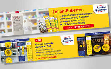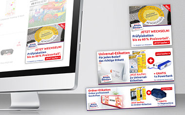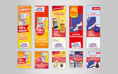 Webbanner in verschiedenen Größen für Kassenbücher und Versandetiketten